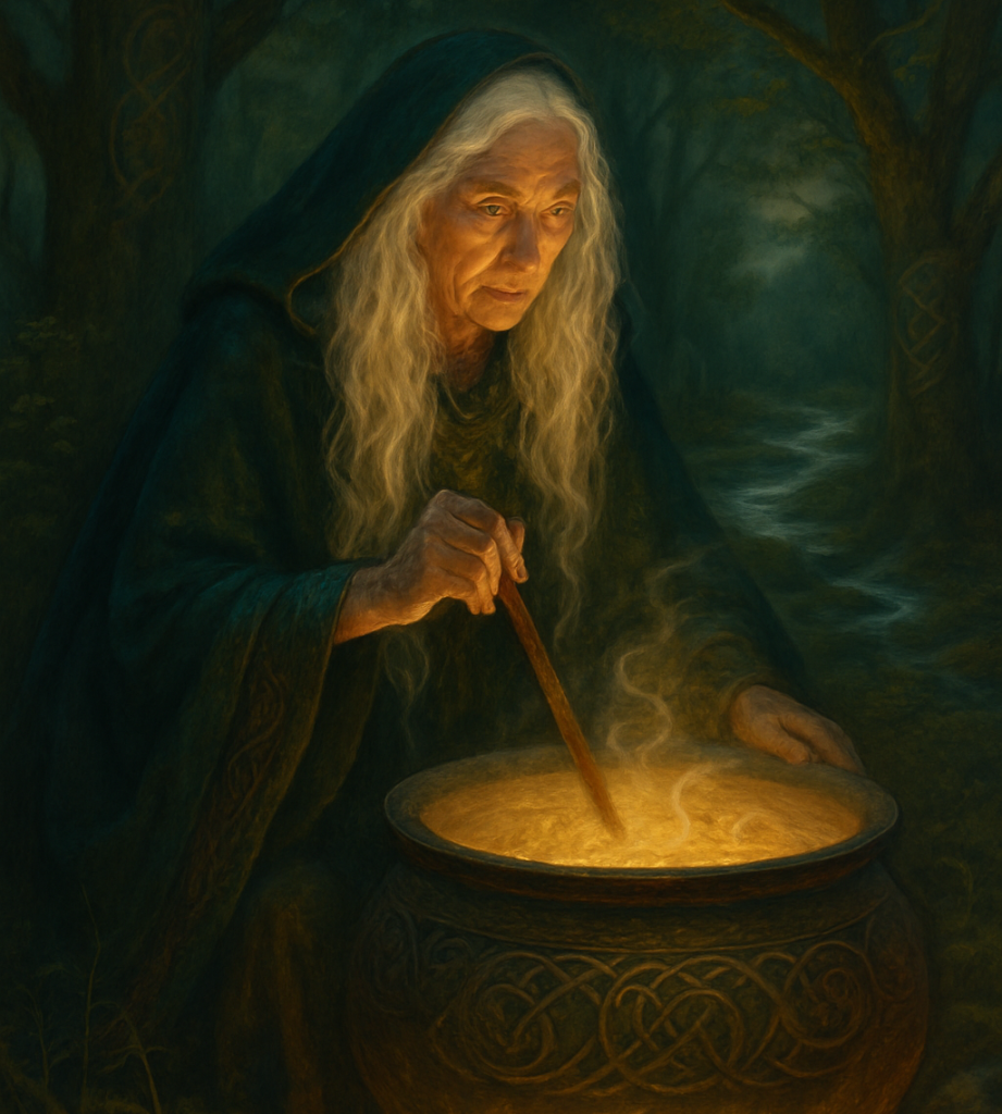 O Cerridwen, dark mother of the flame, cauldron-stirrer, brew-maker, keeper of unmaking — you who chase the soul through shapeshifting fire, awaken the sacred fermentation within. Strip away the false. Stir forth the true. Let us drink of your wisdom.